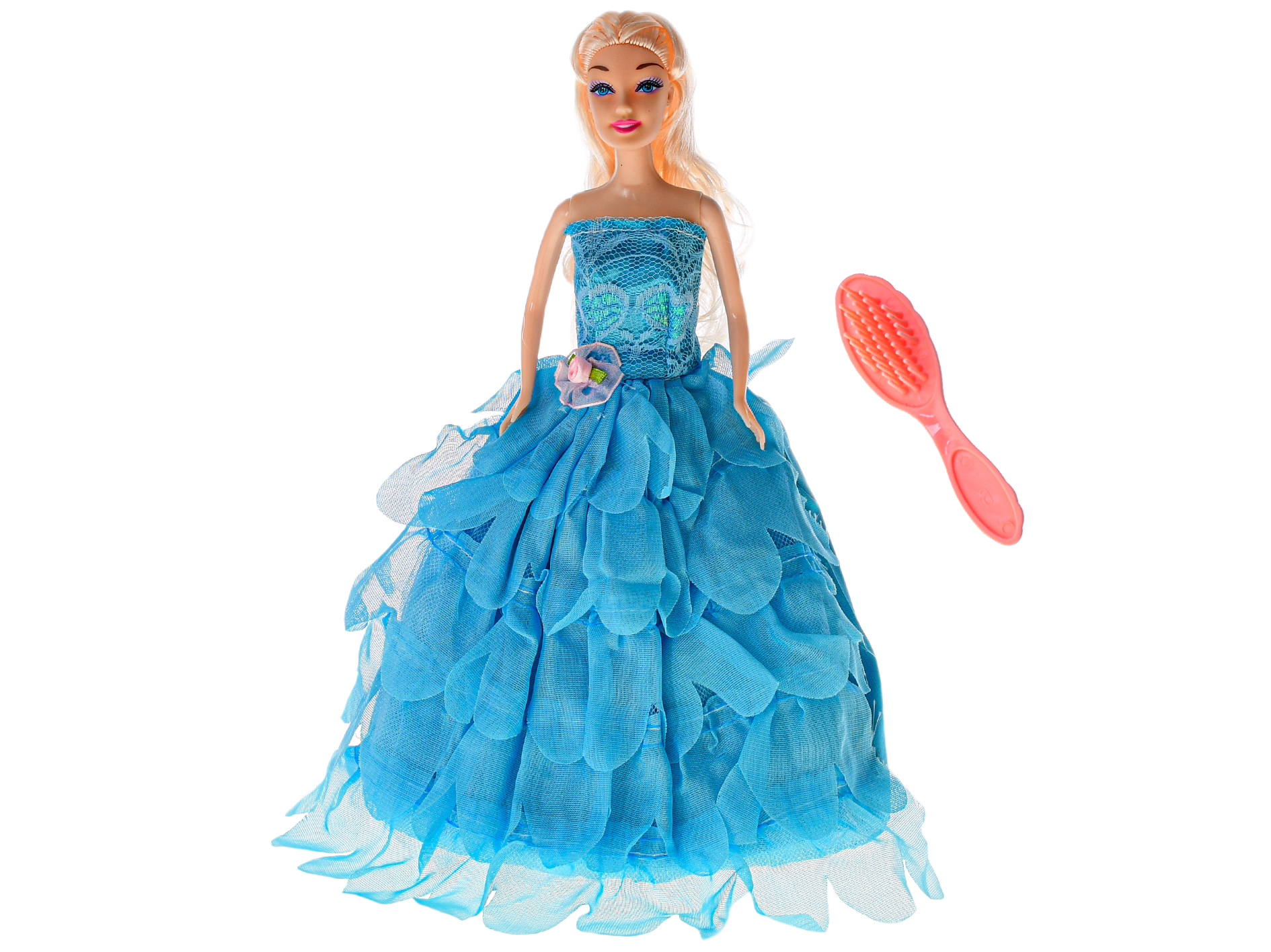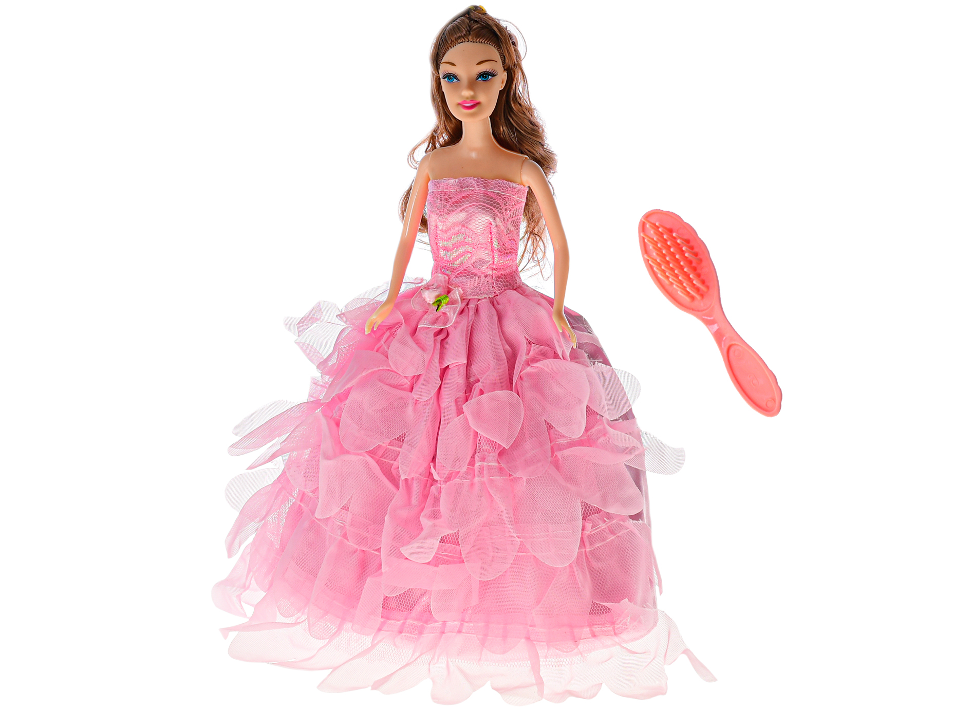Bábiky zaručene poteší každé malé dievčatko Bábika v prekrásnych šatách v ružovej alebo modrej farbe. Súčasťou balenia sú aj doplnky - hrebienok a korunka. Bábika je oblečená do plesových šiat. Oblečte si svoje obľúbené šaty a môžete vyraziť spoločne na bál. Farby: ružová, modrá.